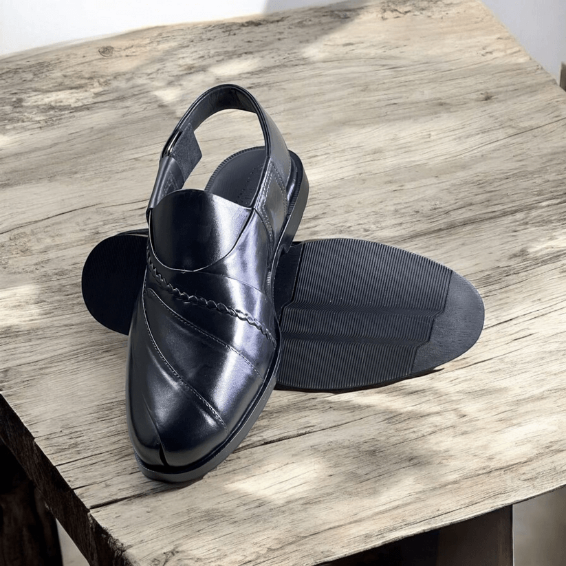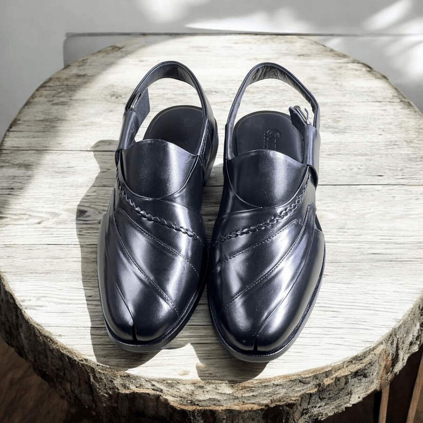 Embosed Peshawari Chappal-BLK-1009
