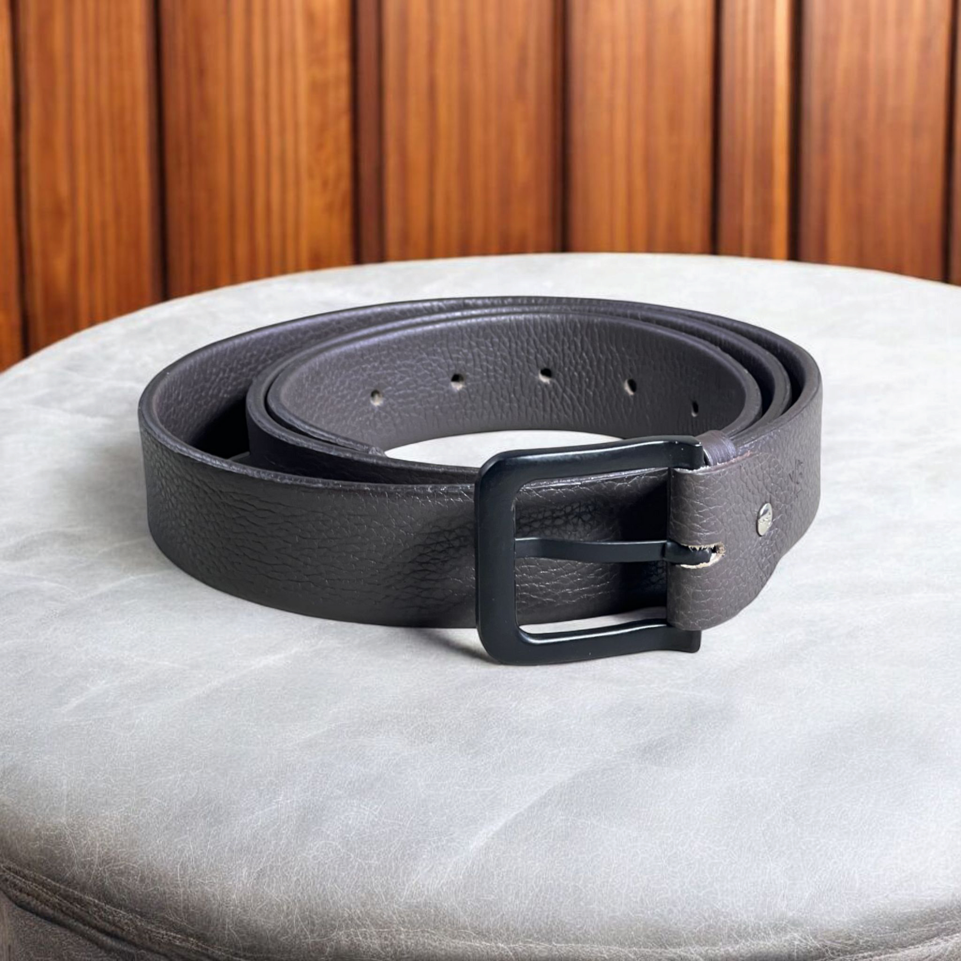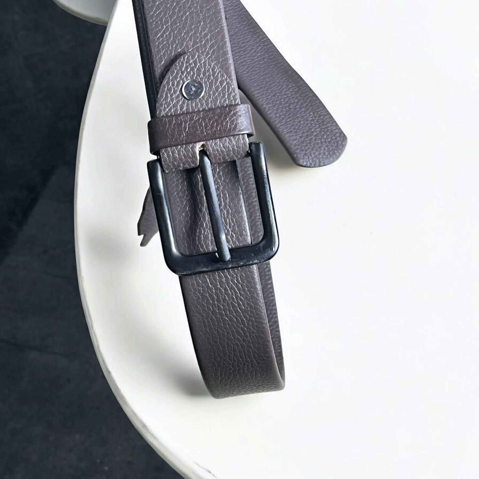 This leather belt features a smooth, polished texture that adds a sophisticated touch to any outfit. Made to last, it showcases fine stitching along the edges for an elegant finish. The back side is lined for extra comfort and durability, while the sleek, tone buckle provides a modern, stylish accent.