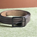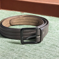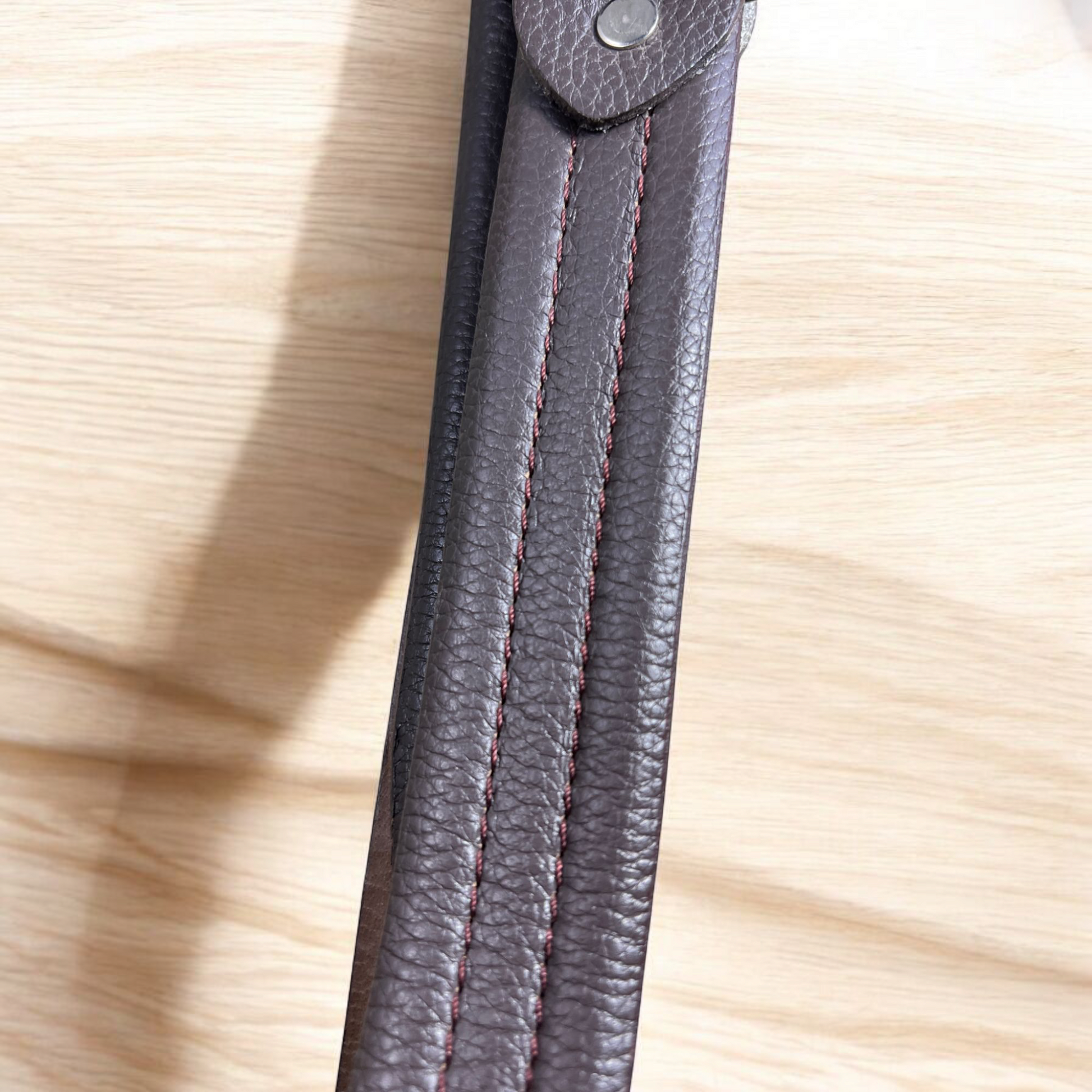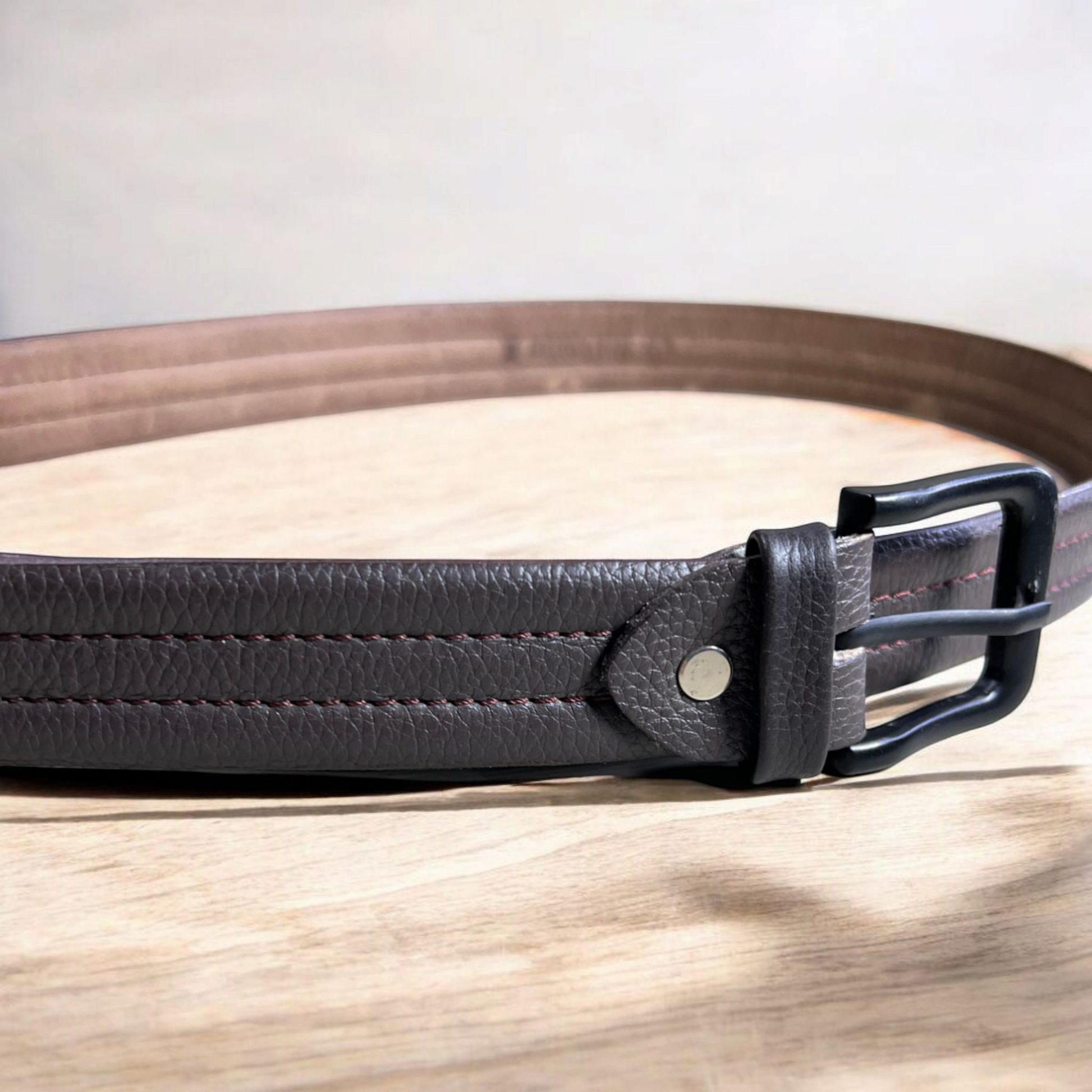 This leather belt features a smooth, polished texture that adds a sophisticated touch to any outfit. Made to last, it showcases fine stitching along the edges for an elegant finish. The back side is lined for extra comfort and durability, while the sleek, tone buckle provides a modern, stylish accent.