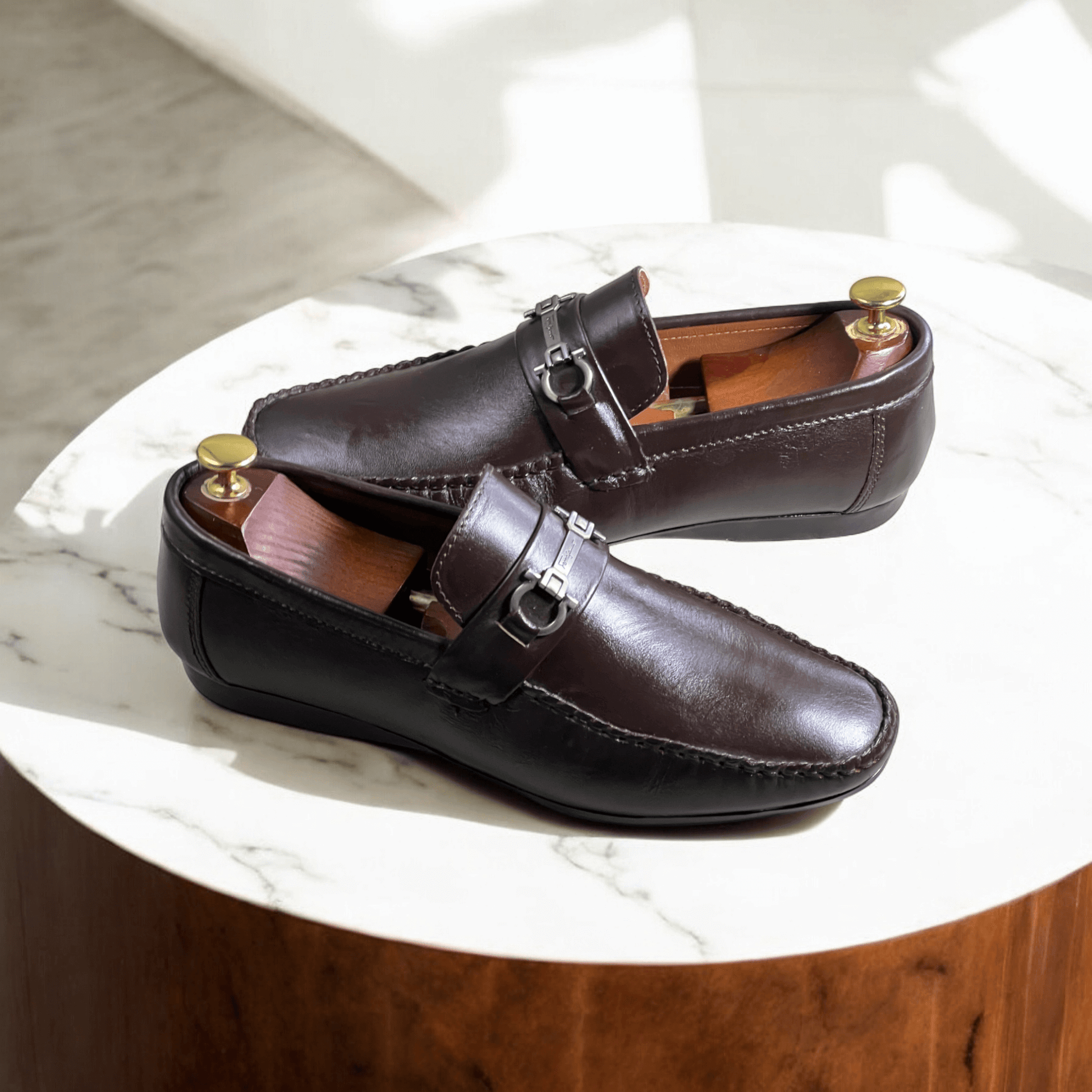 Crafted with high-quality leather, our Leather buckle Brown-5014 is a stylish and comfortable choice for any occasion. Featuring a classic lace-up design, this loafer is perfect for those looking to make a statement while also staying comfortable. Elevate your style and confidence with our Leather buckle Brown-5014.