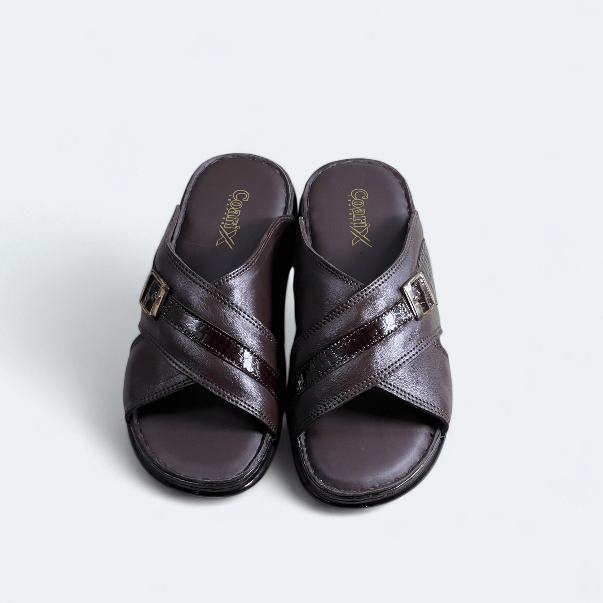Expertly crafted from premium leather, our Leather Chappal With Buckle Brn-3007 flats are the perfect addition to any wardrobe. With a handmade touch, these timeless shoes offer both style and quality. Elevate your look and experience superior comfort with our leather flats.