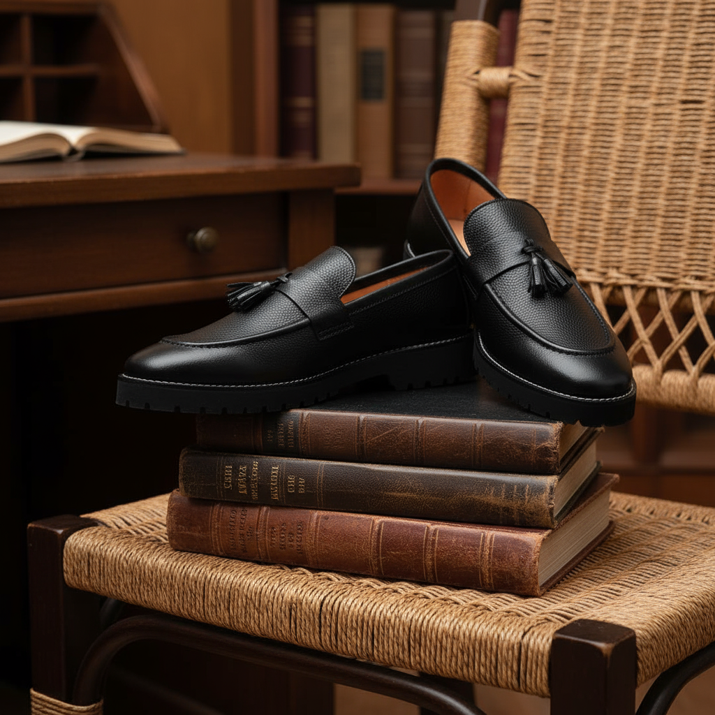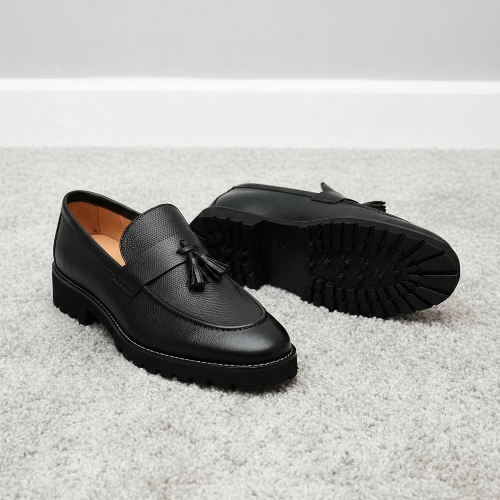 Indulge in luxury with Leather Chunky Tassel blk-018. Handmade with premium mild leather, these formal lace-up shoes exude class and sophistication. Perfect for any formal occasion, these shoes are sure to elevate your style. Crafted with the utmost attention to detail, these shoes are a must-have for any fashion-forward individual.
